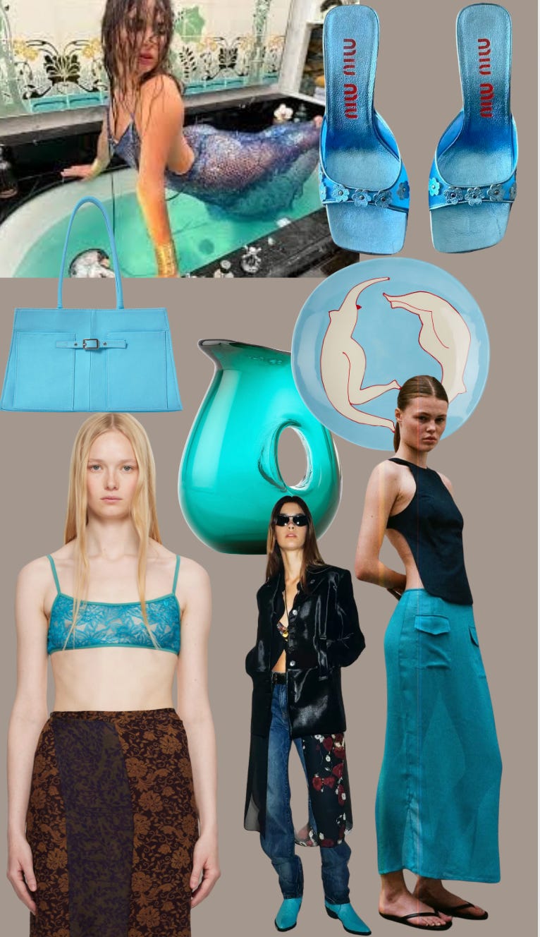 As expected: zebra’s having a moment. Which means turquoise is inevitable. She’s a little bit Western, a little bit Y2K heiress, a little bit post-spiritual burnout. She's the rebrand of serenity — louder, glossier, not here to calm you down, just to remind you she could.