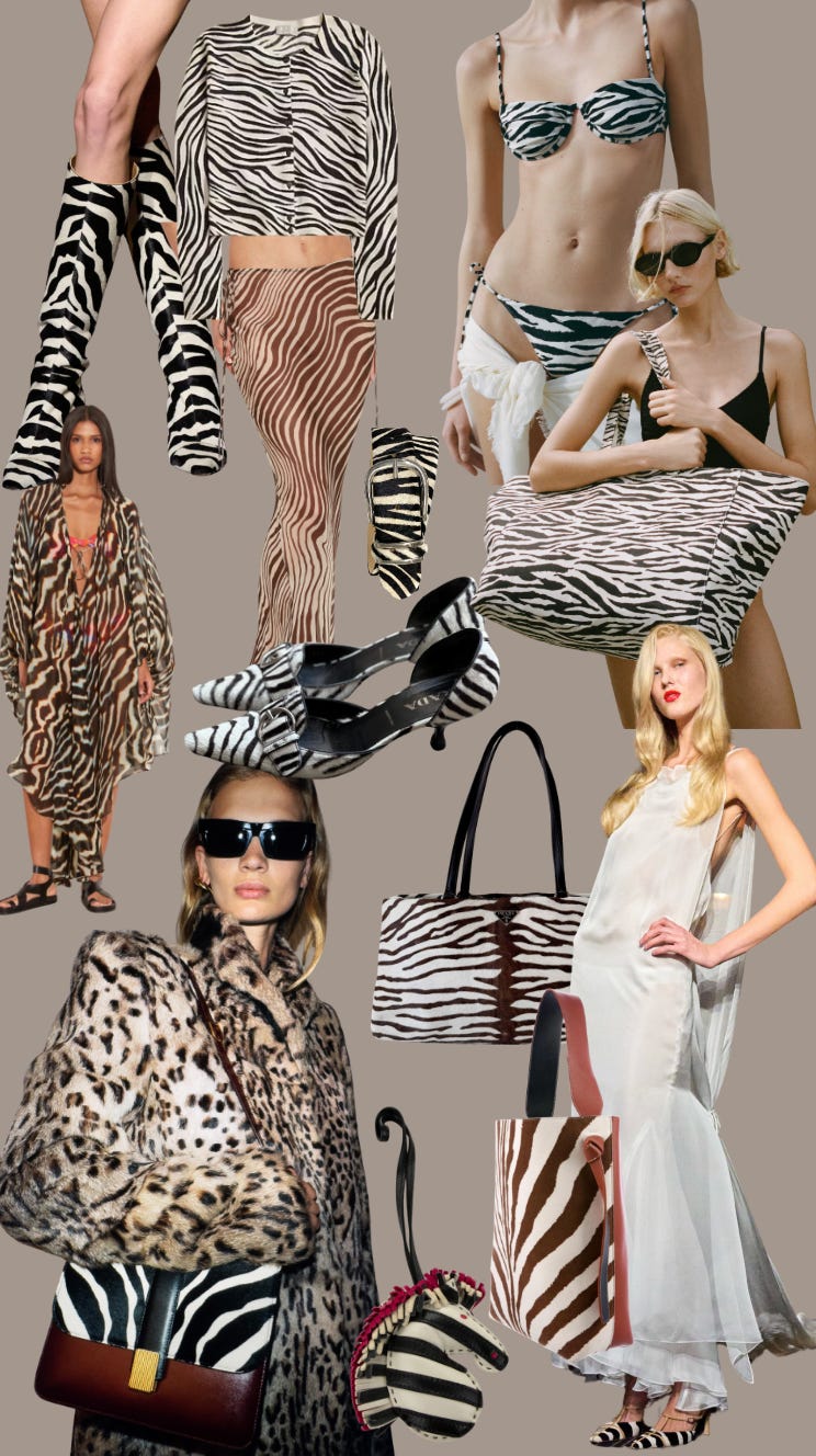 Zebra print has been living rent-free in my head lately. Leopard was everywhere last fall, and let's face it—when leopard takes center stage, zebra is usually lurking just around the corner. For me, the obsession kicked off with the Conner Ives x Jimmy Choo collab, but things got serious once Khaite dropped their Resort collection sprinkled with perfectly-placed zebra touches. So here we are: it's official. Zebra is having its ZEBRAVAGANZA moment.